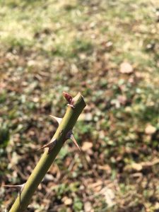 Die Richtung in welche das Auge zeigt, gibt auch die Richtung vor in welche der neue Trieb wachsen wird. Da wir eine gesunde Pflanze haben möchten, bei der die Blätter schnell abtrocknen können, sollte das Auge immer nach außen also von der Pflanze weg zeigen. Dadurch haben alle Triebe genug Licht und der Rosenstrauch hat eine gute Durchlüftung, was es den Pilzsporen schwerer macht sich auszubreiten.
