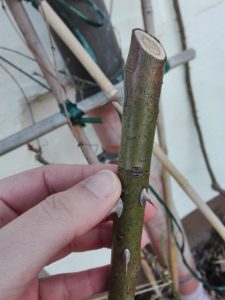 Der Schnitt erfolgt ca. 0,5cm cm über einem nach außen stehenden „Auge“, in schräger Schnittführung. Ihr müsst die Schere also so ansetzten, dass der höchste Punkt des Schnittes direkt über dem „Auge“ liegt.